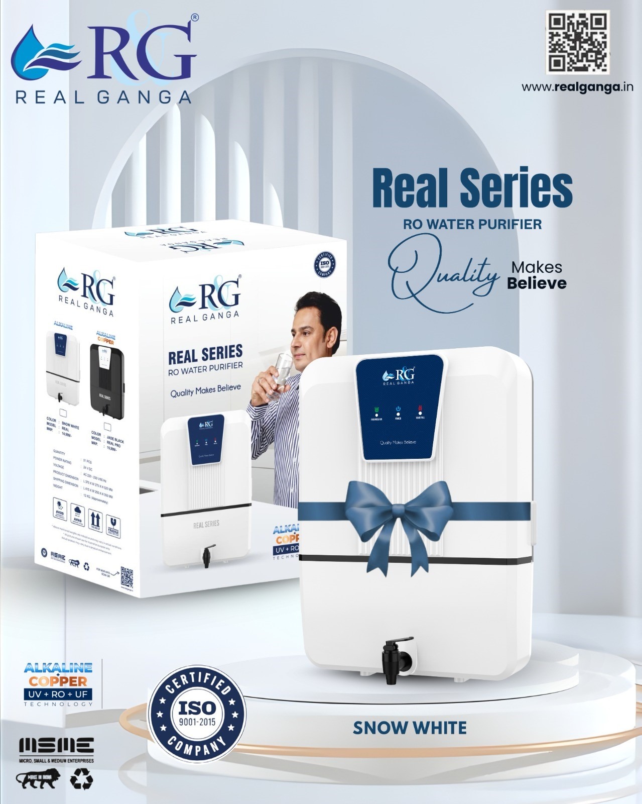 RG system is a top-tier water purifier combining advanced RO + Alkaline + UF technologies to deliver safe, clean and refreshing drinking water.