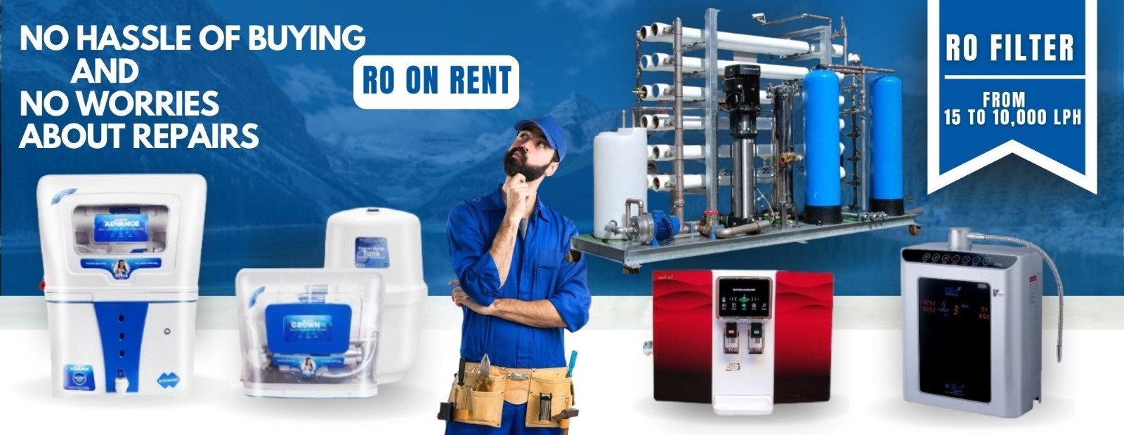 RO On Rent offers low monthly fees, complete maintenance, and the ability to upgrade or return the water purifier.